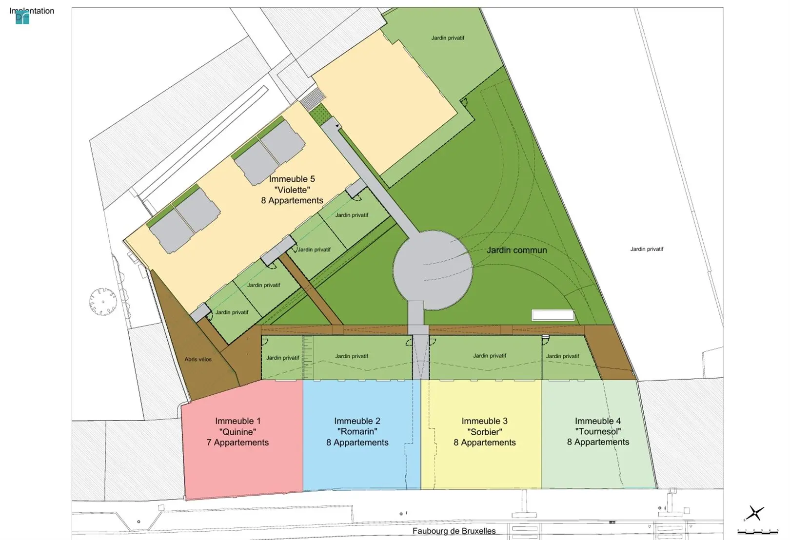 Les 39 appartements - 1, 2 et 3 chambres (tous les appartements 1 chambre sont déjà réservés) - sont répartis en 5 immeubles organisés autour d’une place verte agréable offrant de beaux moments de détente et de rencontres.