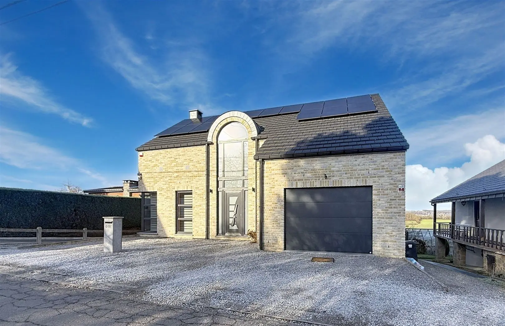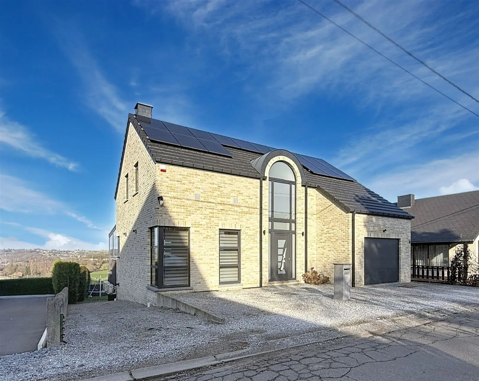 ARSIMONT - Rue du Palton 84A : Construite en 2014, cette superbe maison 4F séduit par sa luminosité et surtout par sa vue absolument incroyable, offrant un véritable sentiment d’évasion au quotidien. A seulement quelques minutes des commodités et bénéficiant d’un PEB B, elle allie performance énergétique et confort moderne. Au rez-de-chaussée, elle se compose d\'un spacieux living avec cuisine moderne ouverte entièrement équipée menant vers la véranda et sa vue imprenable, un espace vestiaire, une buanderie, WC séparé et garage avec porte motorisée. A l\'étage, vous retrouverez un vaste hall de nuit avec rangements menant vers 3 belles chambres et une salle de bains avec WC. Un grand jardin, une terrasse aménagée et des caves viennent compléter l\'ensemble. Équipements techniques : Châssis PVC double vitrage, CC gaz propane (chauffage au sol) et système air chaud/froid, électricité conforme jusque 2040, panneaux photovoltaïques, citerne eau de pluie, parking à l\'avant. PEB B - 130 Kwh/m²/an - CU 20170117505872. Un bien soigneusement entretenu, prêt à accueillir ses nouveaux propriétaires, idéal pour ceux qui recherchent une maison récente, qualitative et un cadre de vie exceptionnel. Faire offre à partir de 580.000€. Contactez-nous au 071/810 888 pour organiser une visite et découvrir cette pépite!