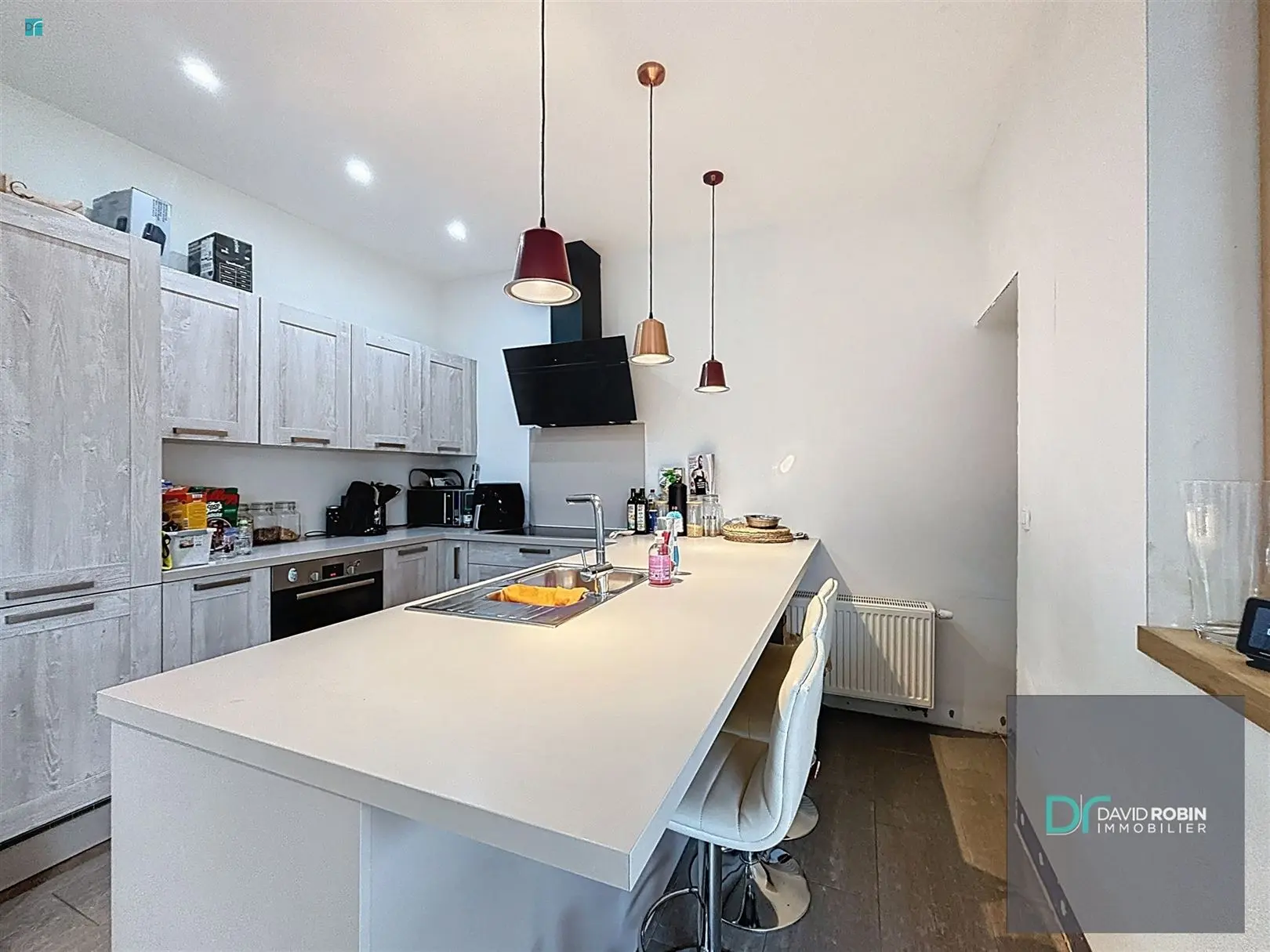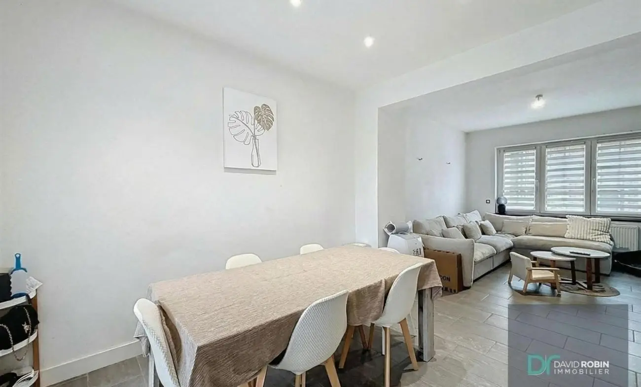 Située dans un quartier calme et accessible, cette agréable maison 3 façades rénovée est idéale pour un premier achat ou une famille. Se compose, au rez-de-chaussée : hall d\'entrée, salon moderne et salle à manger avec cuisine ouverte équipée et salle de bain avec douche et WC. A l\'étage : 3 chambres et salle de douche avec WC.