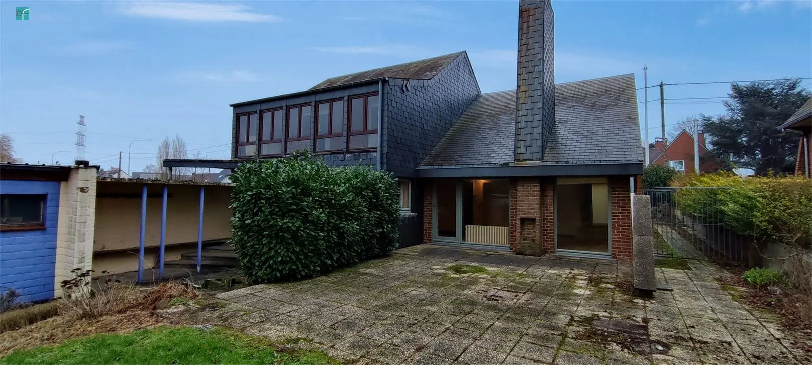 VENDU! FLEURUS-Chaussée de Charleroi 631: Sur axe fréquenté, à 2 pas de la E42, villa 4 façades de 1969 avec entrepôt de +/- 140m² avec facilités de parking et excellente visibilité comprenant: 2 caves et chaufferie en sous-sols. Rez: hall d\'entrée, wc séparé, beau living donnant sur la terrasse et le jardin, cuisine, buanderie, 2 chambres, salle de douche, salle de bain. Etage: une grande chambre, terrasse couverte et 2 greniers de rangement. Commodités: Chauffage central mazout (chaudière St-Roch de 2015), châssis simple vitrage en bois; toiture en ardoises naturelles en parfait état, citerne d\'eau de pluie, jardin clôturé, orientation Nord Ouest arrière. Entrepôt de +/- 140m² idéal pour une activité professionnelle ou votre passion. Parking aisé sur le domaine privé. PEB F - 455 kwh/m²/an - CU: 20230126011098. Prix: 270.000 € (sous réserve d\'acceptation par les propriétaires). Mesures prises Intramuros.