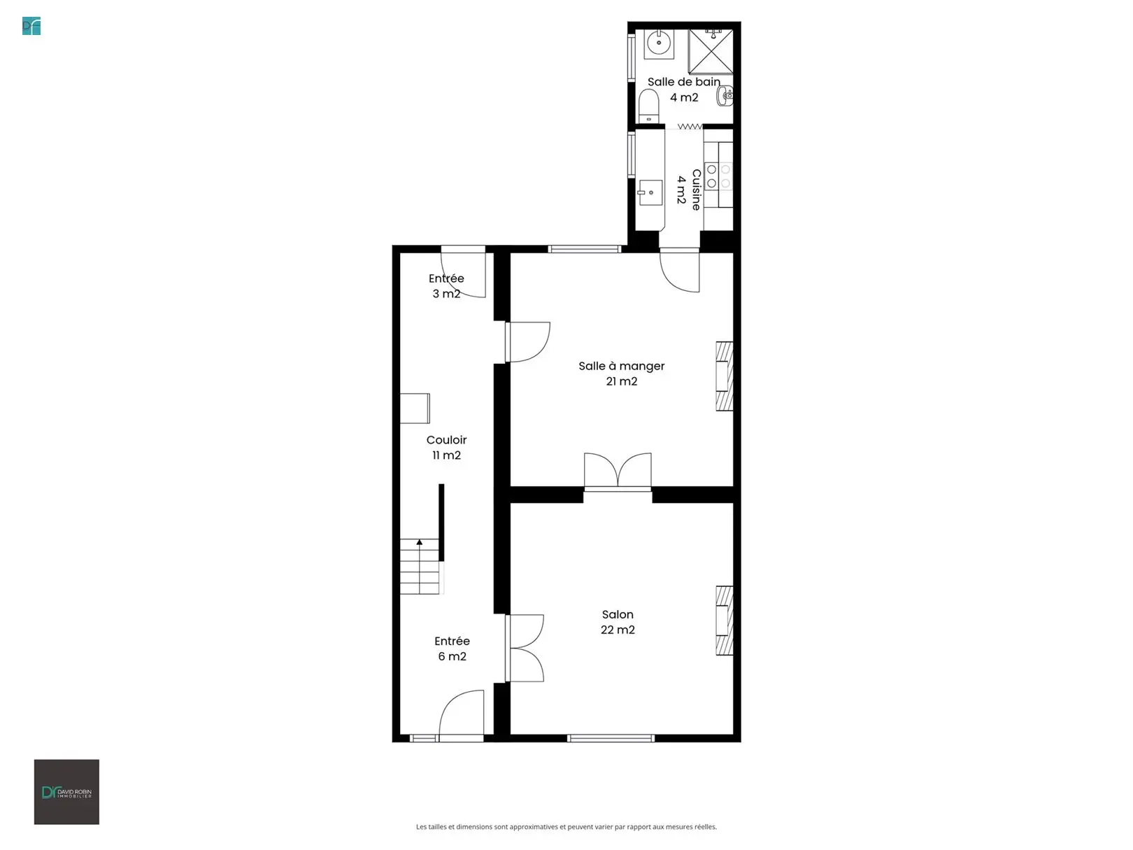salon 4,7m x 4,3m = 20,2m²