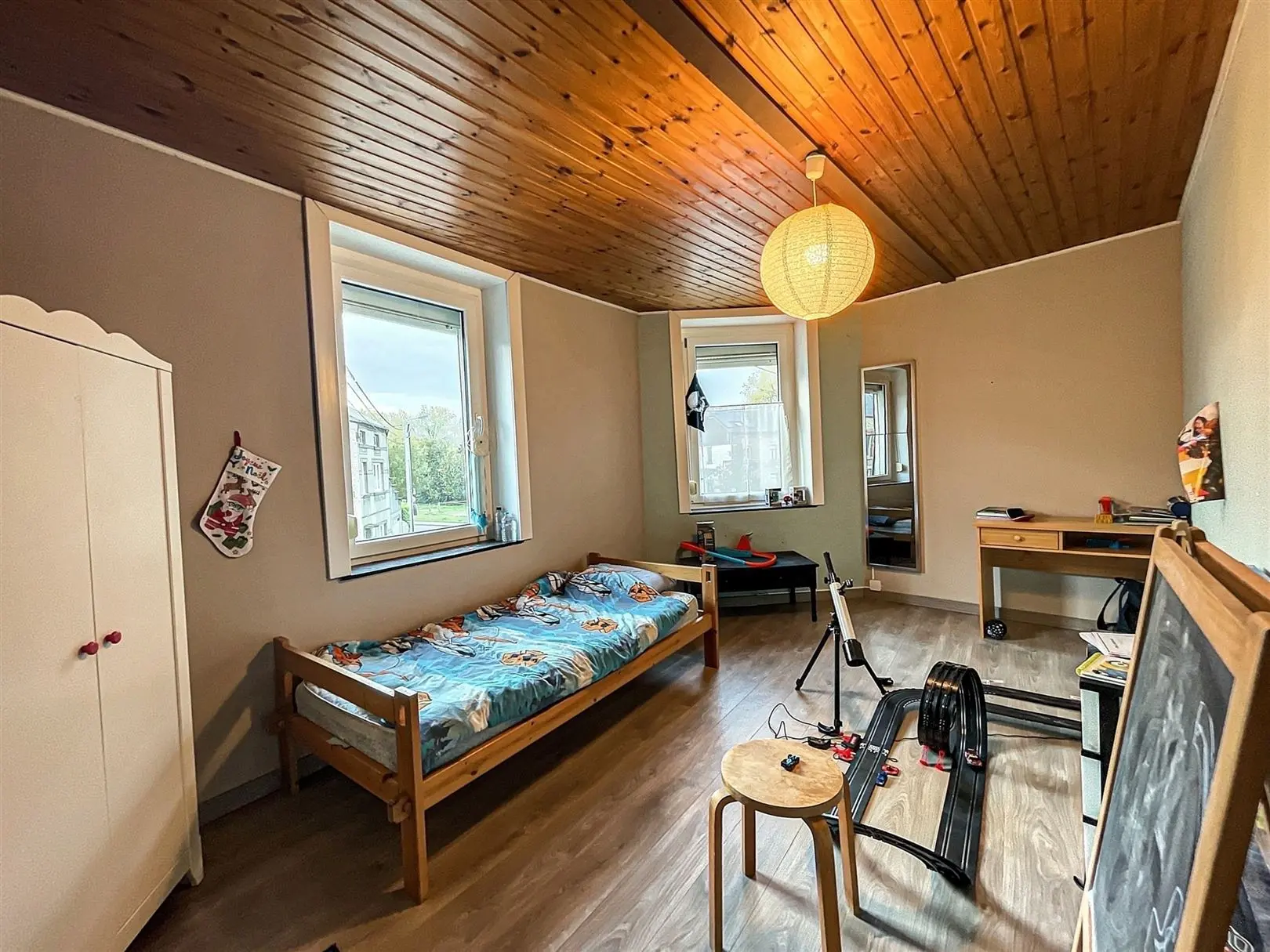 - 4 chambres, possibilité d\'en aménager 2 supplémentaires dans le grenier isolé avec escalier existant (45 et 31 m²)