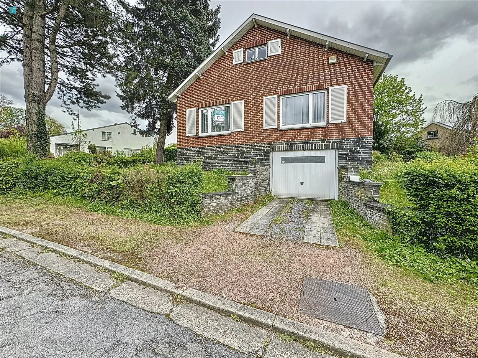 Loverval - Avenue du vieux frêne 23 : Maison 4 façades, à rafraichir. Elle présente une situation idéale, située dans un quartier calme, tout en étant proche des grands axes et commodités. Au rez : hall d\'entrée avec petit vestiaire et WC séparé, vaste séjour/salle à manger avec cheminée décorative, cuisine semi-équipée à rafraichir, avec accès sur le jardin. Le hall de nuit dessert ensuite deux chambres, ainsi qu\'une salle de bain et un bureau. Au 1er étage: hall de nuit desservant 2 chambres supplémentaires à aménager, ainsi qu\'un wc et deux greniers sous combles, de part et d\'autre de la toiture non isolée. Au sous-sol: entièrement cavée sous l\'habitation, avec un espace chaufferie, un espace buanderie, une grande cave supplémentaire contenant la cuve à mazout, garage avec porte manuelle PVC. Extérieurs: un emplacement de parking devant le garage et un beau jardin arboré, non clôturé délimité par les haies. Chauffage central au mazout, cuve à mazout de + de 3000 L, chaudière Saint-Roch datant de l\'année 2000, châssis double vitrage Pvc Blanc avec Volets type persiennes, excepté 3 petits châssis bois SV pour le Wc du bas et les chambres de l\'étage. Compteur électrique bi-horaire, toiture ardoises. Adoucisseur d\'eau dans la cave à vérifier si fonctionnel, citerne eau de pluie et robinet dans la cave. Nombreuses possibilités pour ce bien ! PEB - kwh/m²/an - - FAIRE OFFRE A PARTIR DE : 250.000€ (sous réserve d\'acceptation du propriétaire). DAVID ROBIN IMMOBILIER 071/810.888