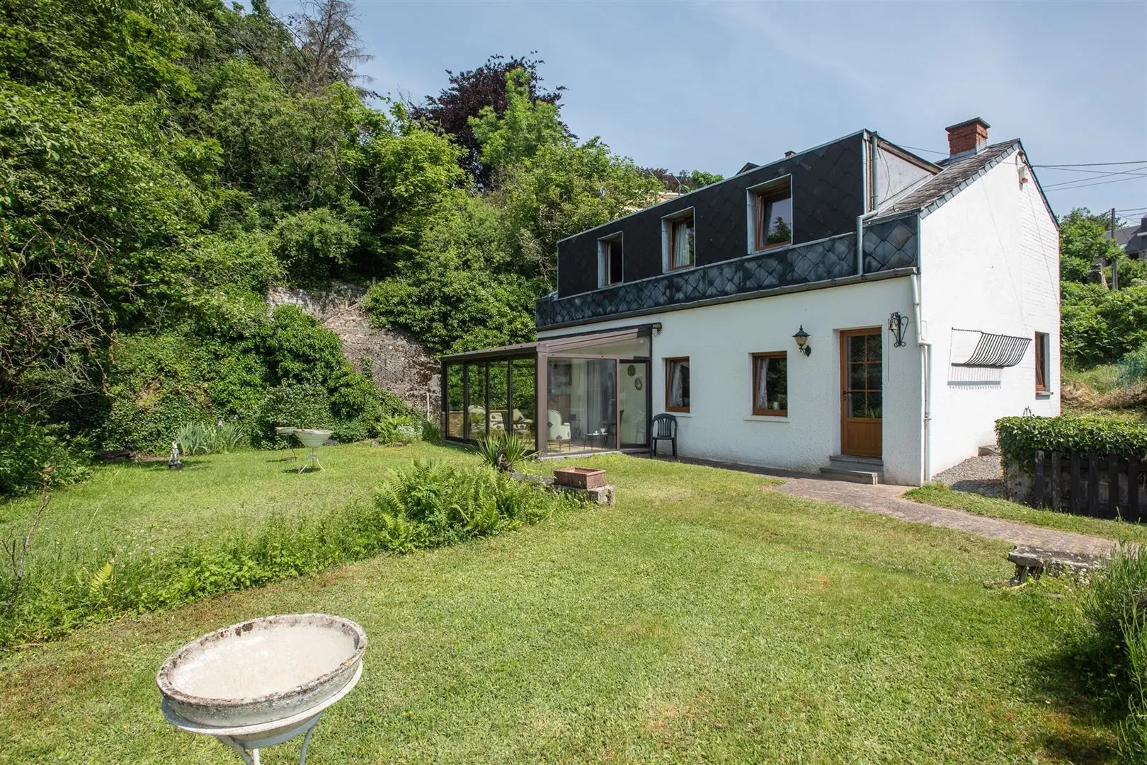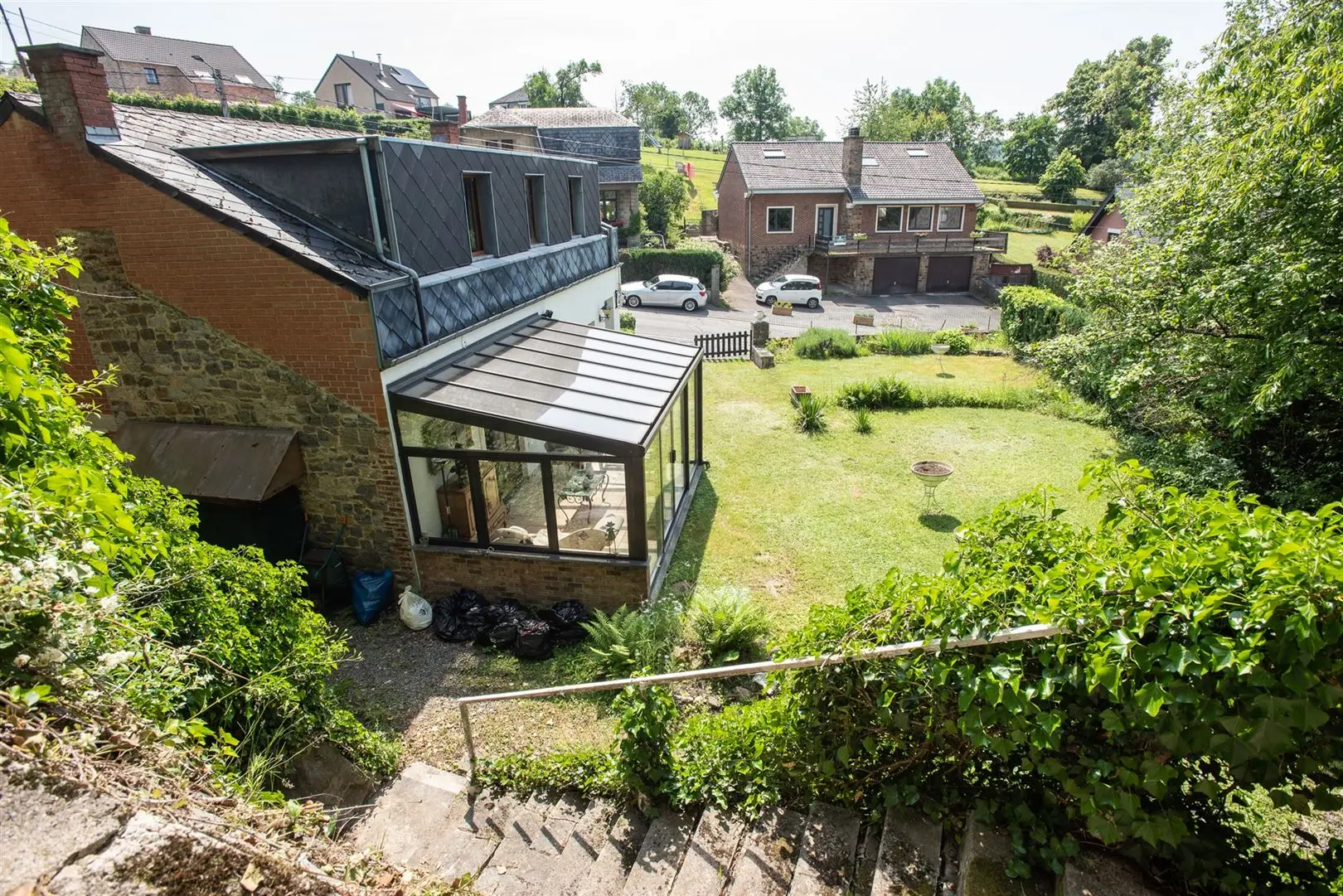 Jardin d\'agrément au niveau de la maison et une partie en escalier offrant de belles vues