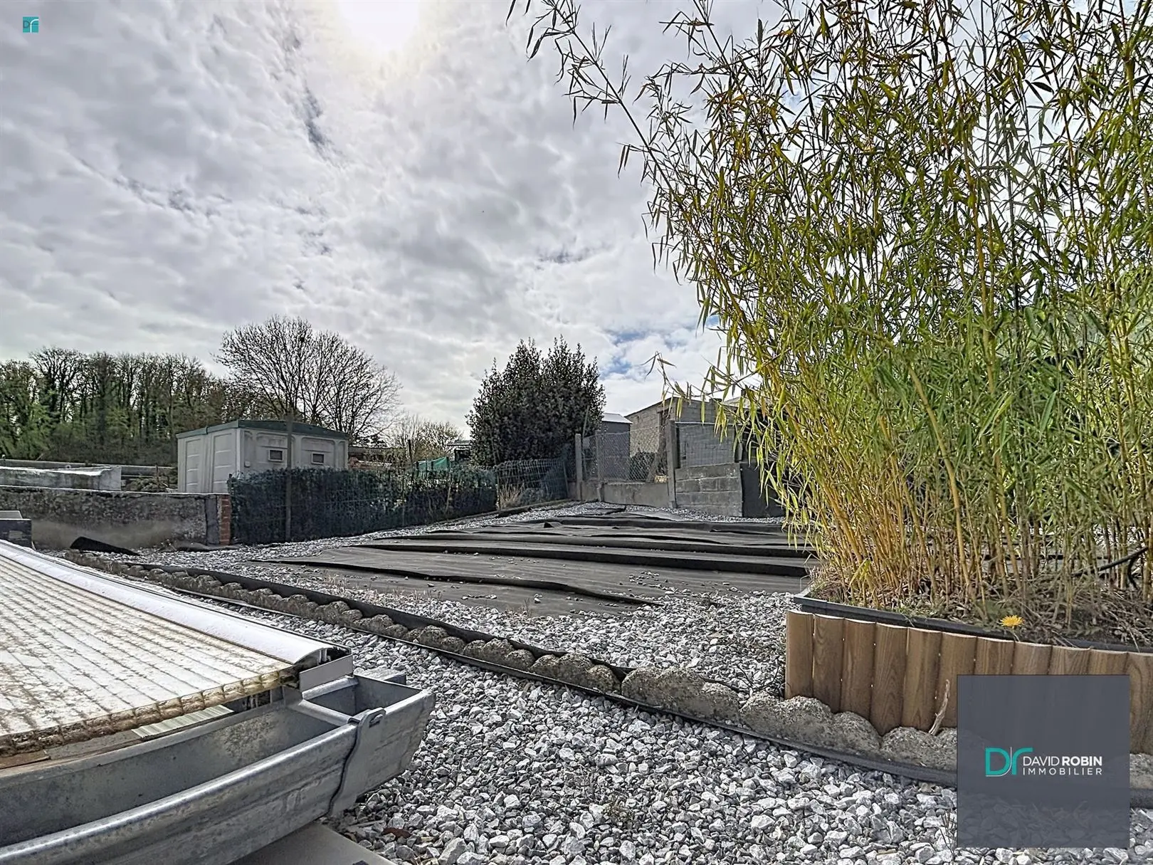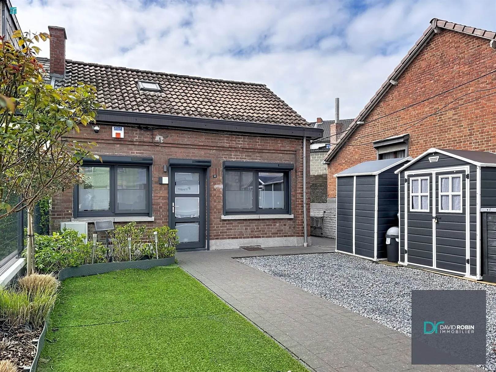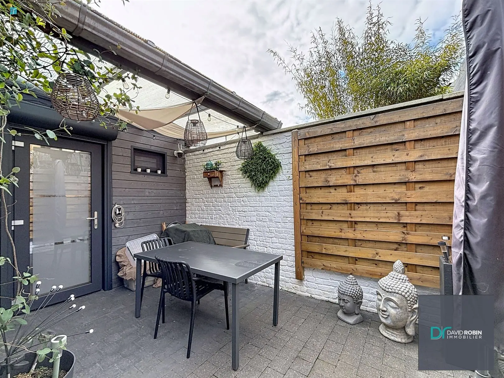 - terrasse à l\'arrière et à l\'avant jardinet et emplacement de parking avec portail