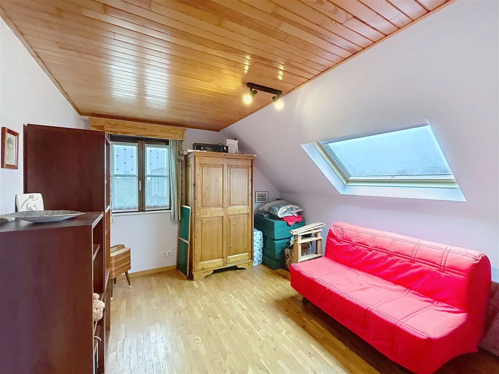 David Robin Immobilier vous propose cette jolie villa 4 façades située Rue Gironfontaine n°1 à Sombreffe. Construite en 1991, cette maison 3 chambres séduit immédiatement par son charme et son superbe jardin. Vous pourrez combiner la tranquillité tout en restant à proximité des grands axes. Au rez- de chaussée ,vous découvrirez un hall d’entrée avec WC, un séjour lumineux, une cuisine équipée (hors lave-vaisselle) ainsi qu’une buanderie. À l’étage, l’espace nuit se compose de trois belles chambres ainsi que d’une salle de douche. Au niveau des commodités, la maison dispose de châssis double vitrage, de 14 panneaux photovoltaïques de volets à l’étage, d’un garage une voiture avec porte électrique, d’une citerne d’eau de pluie reliée aux WC ainsi que de belles caves carrelées. L’ensemble se trouvant dans un très bon état . Calme , charme et fonctionnalité sont au rendez-vous. Libre en juillet 2026,