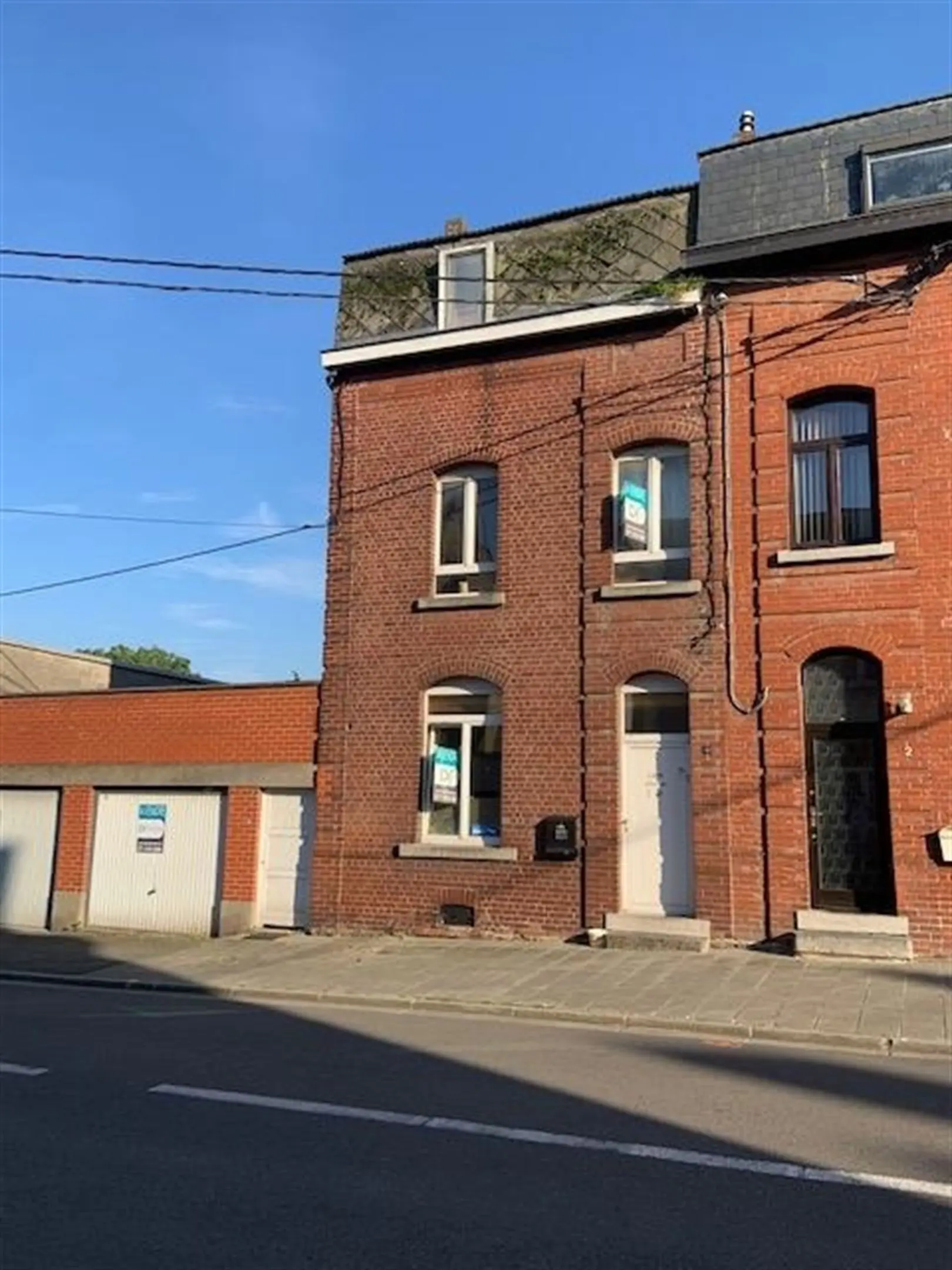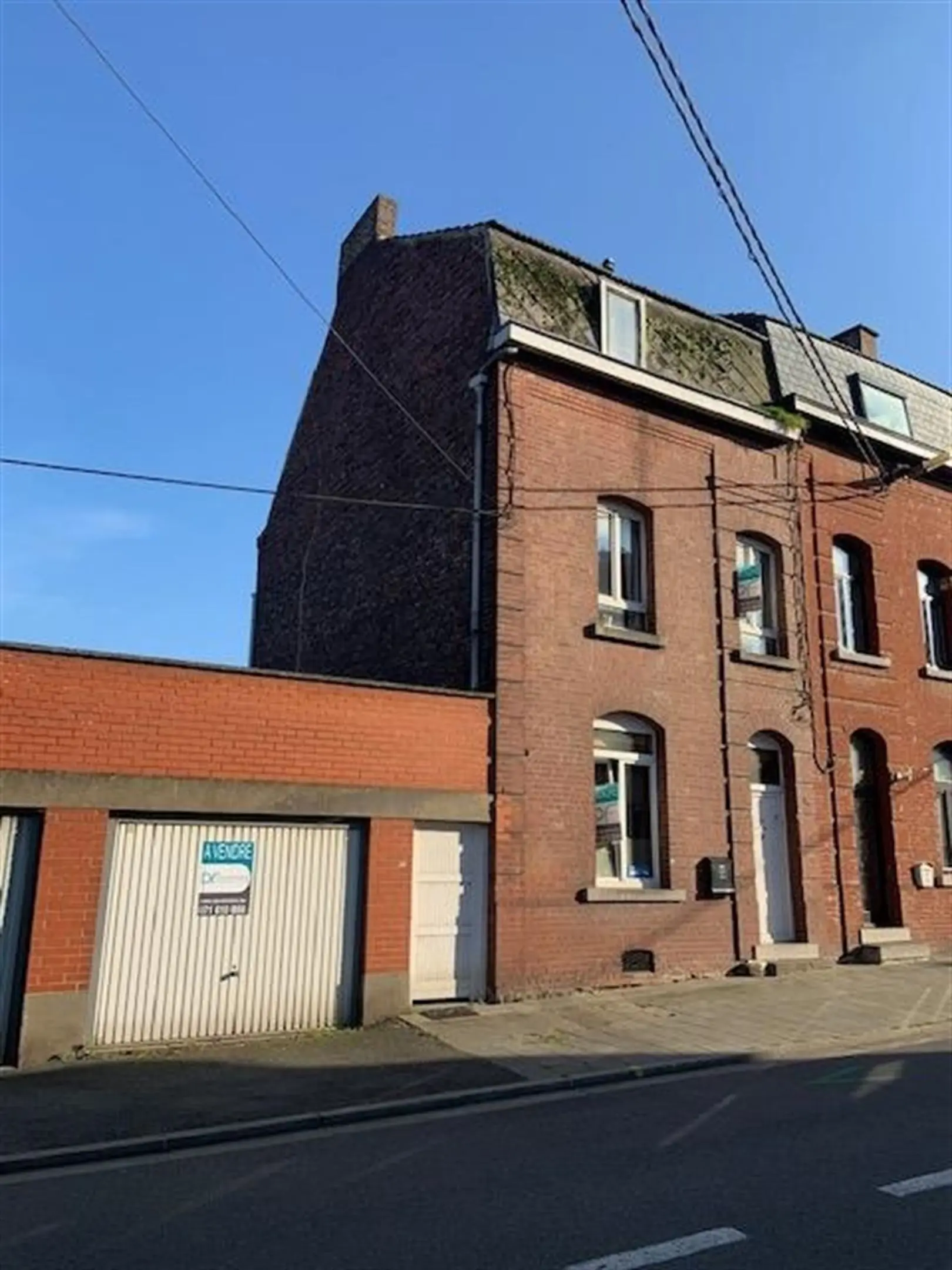 TAMINES - Rue de l\'Abattoir 4 - Dans une rue calme, maison 3 façades à rénover, avec garage. Composition : Deux caves au sous-sol. Rez: Cuisine, salon, buanderie, salle de bains. Étage: 2 chambres. Grenier aménageable, garage, passage latéral. Pas de chauffage central, poêle au gaz, prévoir budget travaux. Pas de jardin. PEB G - 597 kWh/m².an - CU 20210125015047. Prix: Faire offre à partir de 90.000€ (sous réserve d\'acceptation par les propriétaires).