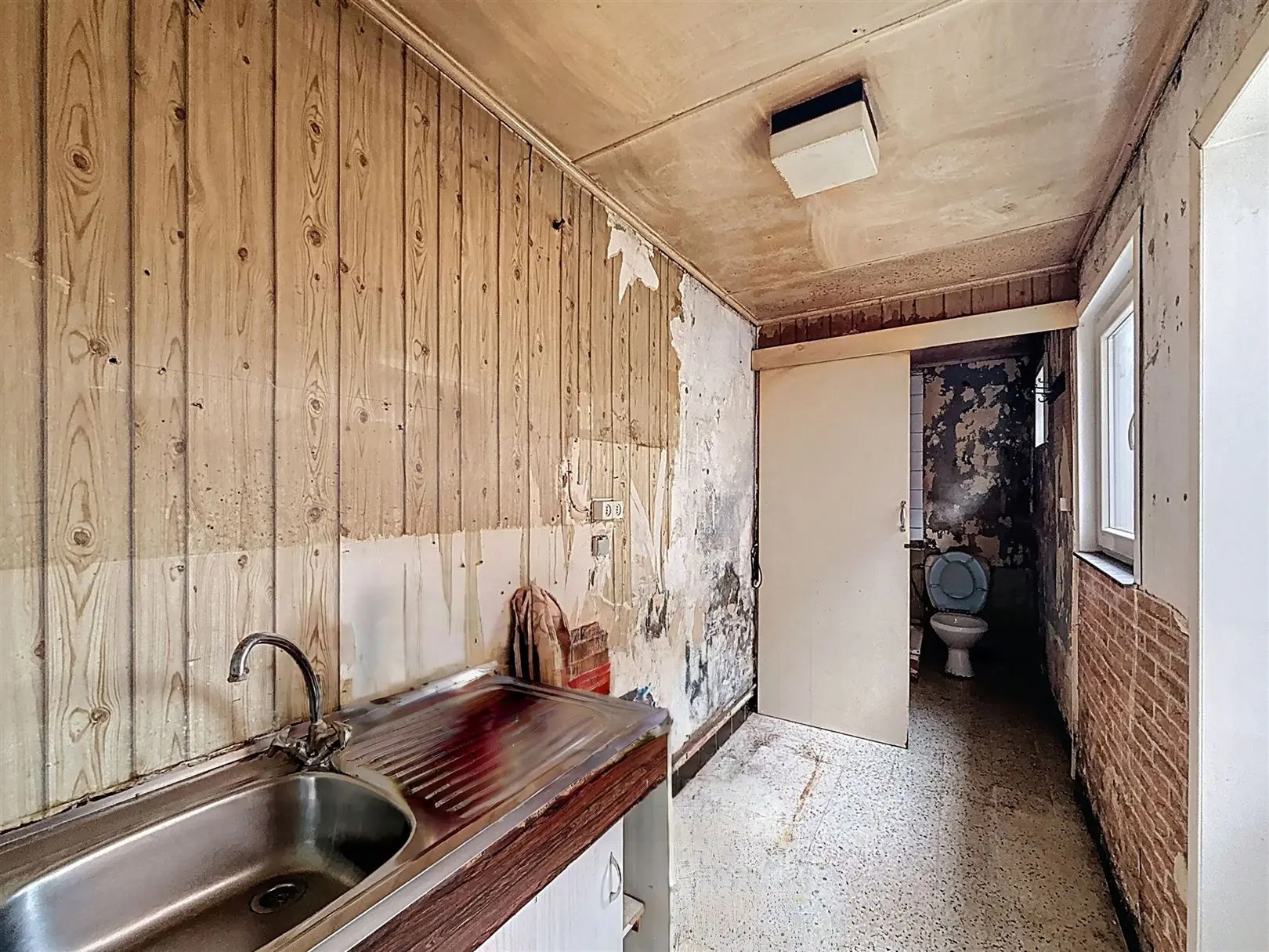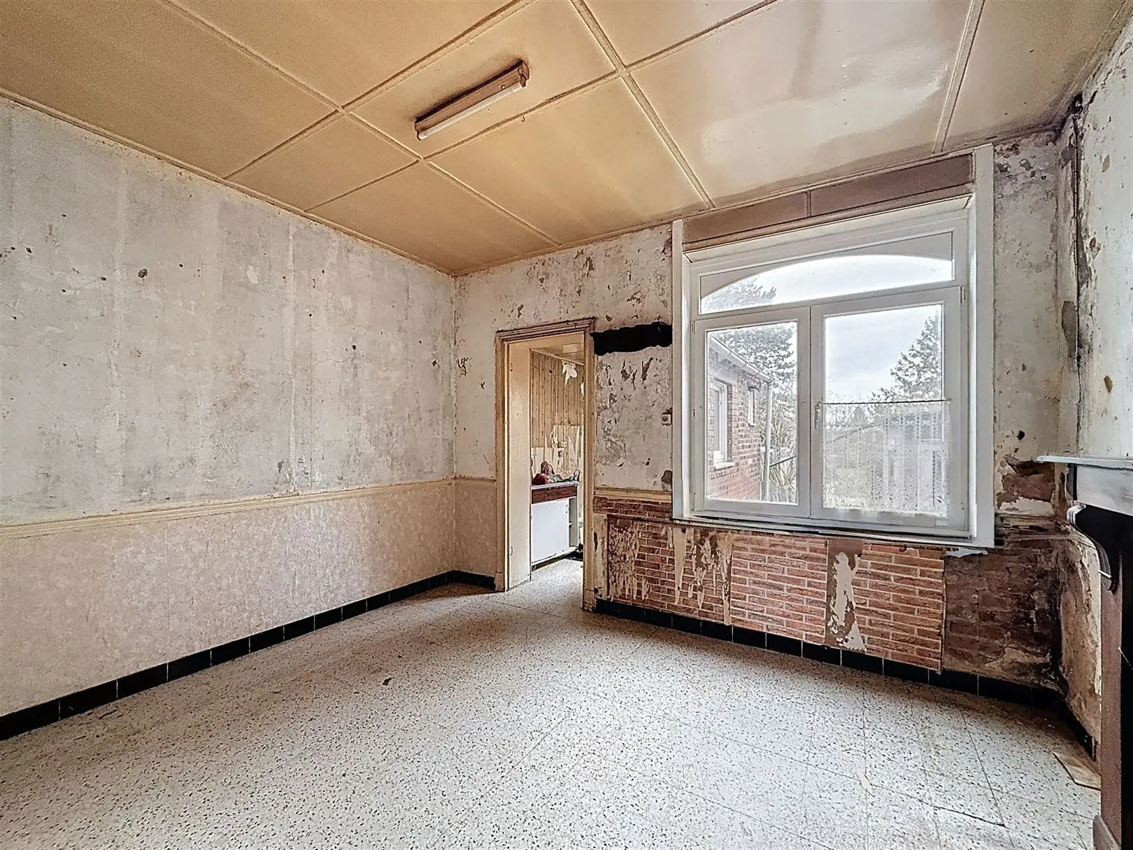 VELAINE-SUR-SAMBRE - Rue de Prahy 5 : Découvrez cette agréable maison à rénover idéalement située à proximité des grands axes. Elle se compose comme suit : au rez-de-chaussée, vous retrouverez un salon, une salle à manger, une cuisine, une salle de douche avec WC. Au 1er étage, deux chambres d\'environ 13m². Un garage, un grenier de rangement, des caves et un grand jardin viennent compléter l\'ensemble! Commodités : châssis PVC double vitrage (2017), raccordement aux égouts, PEB : G - 1055 kWh/m² an CU : 20260224003761. Prix: 135.000 € (sous réserve de l\'acceptation des propriétaires). Contactez-nous au 071/81.08.88 pour découvrir cette opportunité!