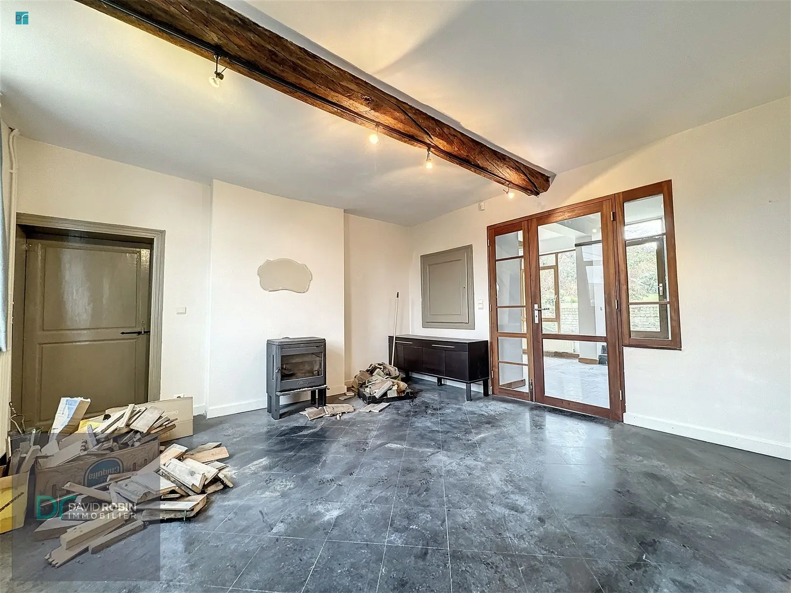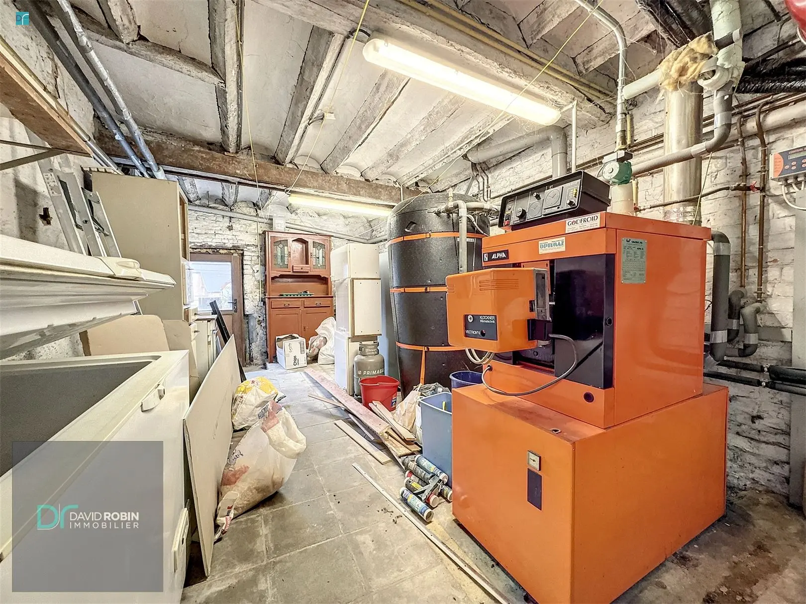VENDU !!! - VILLERS PERWIN : Rue Gaston Boudin 33: Située au coeur d\'un village plein de charme, dans une cour en retrait de la voirie, nous vous présentons cette maison pleine de potentiel de +/- 250 m². Elle se compose comme suit ; Cave en sous sols. Au rez-de-chaussée; hall d\'entrée, WC avec lave-mains, bureau de 9m², séjour ouvert sur la cuisine, salon avec poêle à bois, buanderie. Au premier étage, le hall de nuit distribue 4 belles chambres de min 13 m², une salle de bains, une salle de douche, un Wc séparé et un local avec accès au grenier. Vaste grenier aménageable. Deux garages box fermé et coquet jardin orienté Sud-Est avec verger. Commodités: chauffage central mazout (chaudière de 2001), panneaux solaires pour la production d\'eau chaude, citerne d\'eau de pluie, châssis double vitrage en bois de 2001, compteur bi-horaire. PEB C- 222 Kwh/m².an - CU : 20231124023684. Prix : 295.000 € (sous réserve de l\'acceptation des propriétaires). Annonce complète et documents disponibles sur www.davidrobin.be