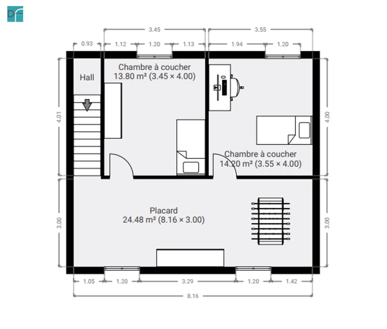 Chambre à coucher 4,0m x 3,6m = 14,2m²