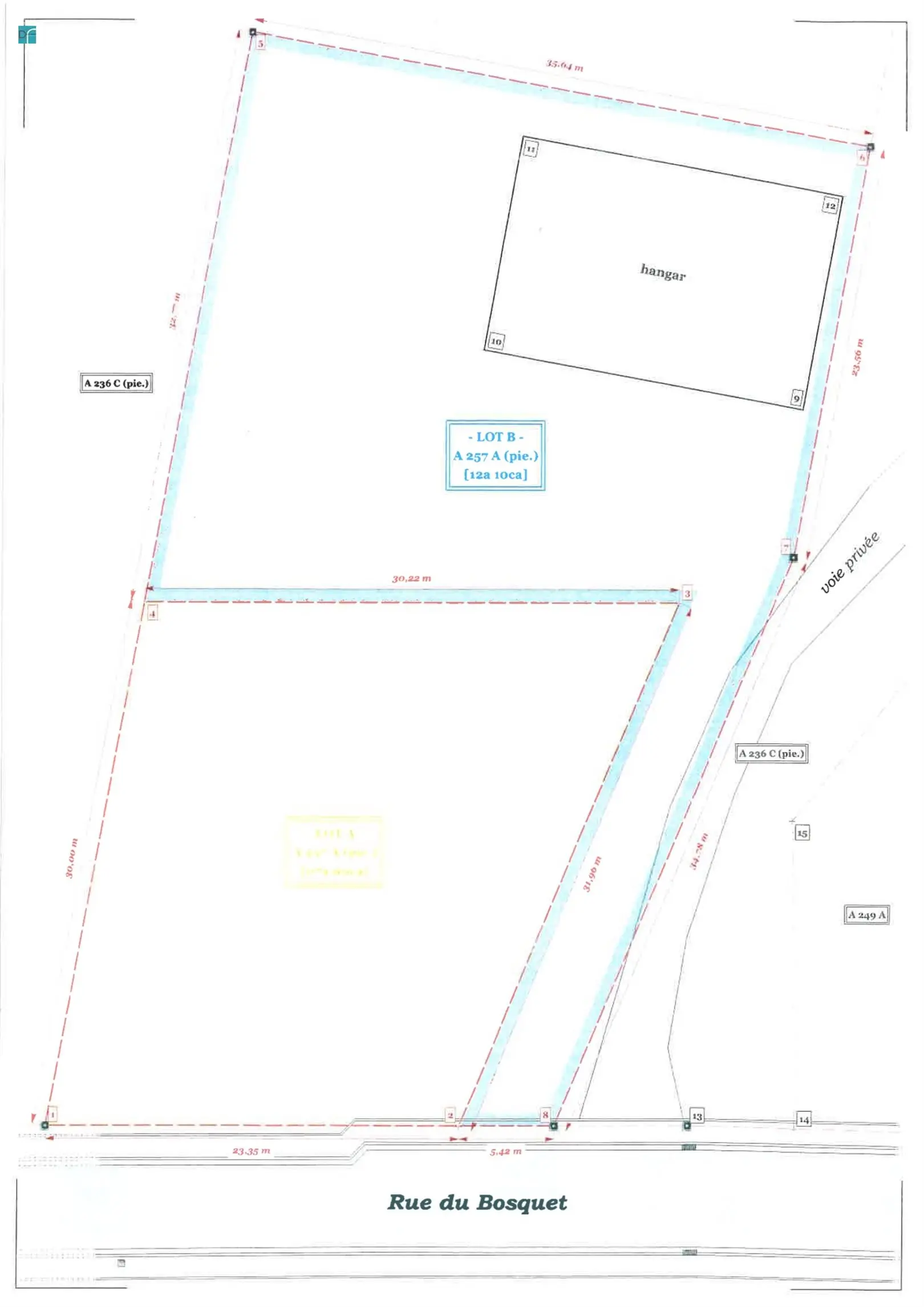 Plan de division : LOT A - A257 A (pie.)