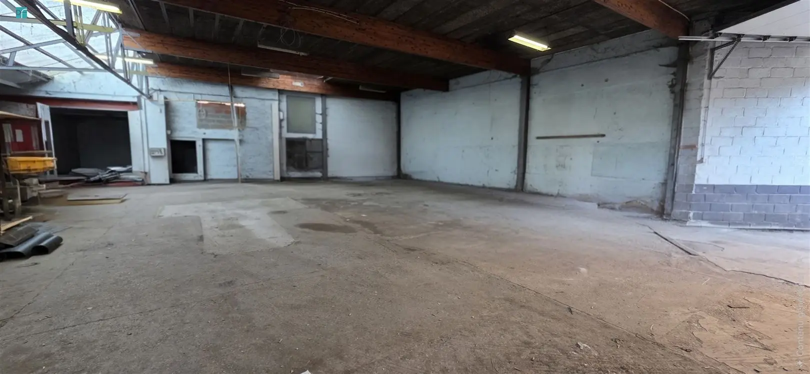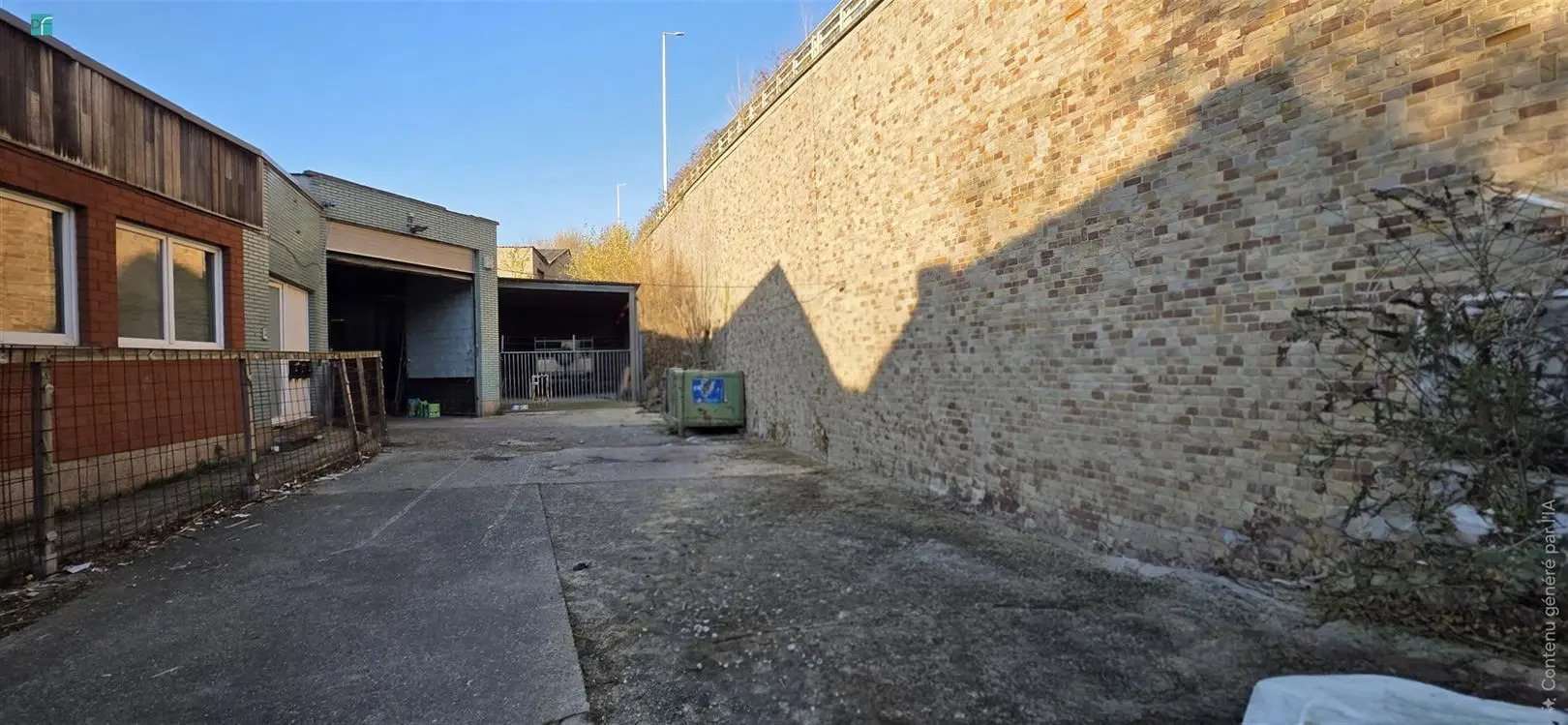 JUMET - Rue de Lodelinsart 15: A 2 pas de l\'autoroute A 54, Entrepôt de +/- 320m² + un garage de +/- 60m². Grand espace de stockage, cabine de peinture de +/- 25m², espace bureaux en mezzanine de +/- 30m² à aménager. Chauffage par Aérotherm au gaz de ville. Alarme et caméras de surveillance. Raccordement à l\'eau, gaz et électricité ainsi qu\'aux égouts. Revêtement de toiture en Derbigum à revoir. Parking à l\'avant pour plusieurs véhicules. Dimensions de la porte de garage principale (3,67m largeur x 3,54m de hauteur). Prix: 180.000 € (sous réserve d\'acceptation des propriétaires).